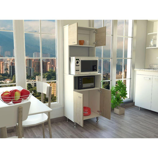 Alacena Diamante, Blanco y Beige, Amplios Espacios Para Guardar Alimentos y Electrodomésticos