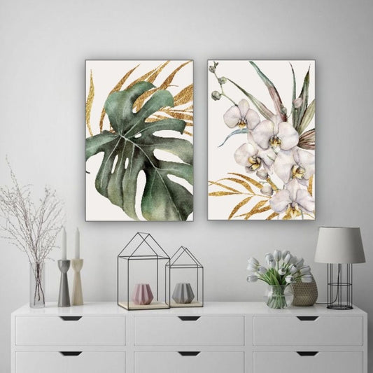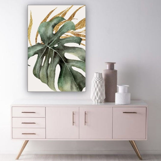 Cuadro Decorativo tipo Marmol Planta Mostera Gold 50 x 70