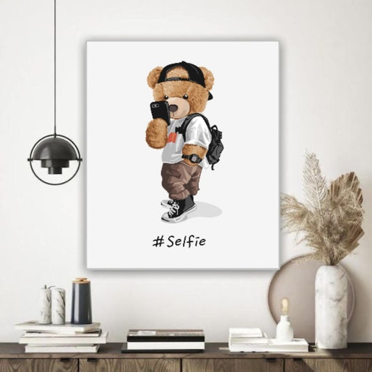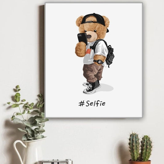 Cuadro Decorativo tipo Marmol Oso Selfie 40 x 40