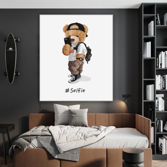 Cuadro Decorativo tipo Marmol Oso Selfie 180 x 120