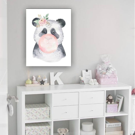 Cuadro Decorativo tipo Marmol Oso Panda Chicle Kids 70 x 50