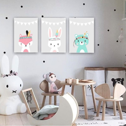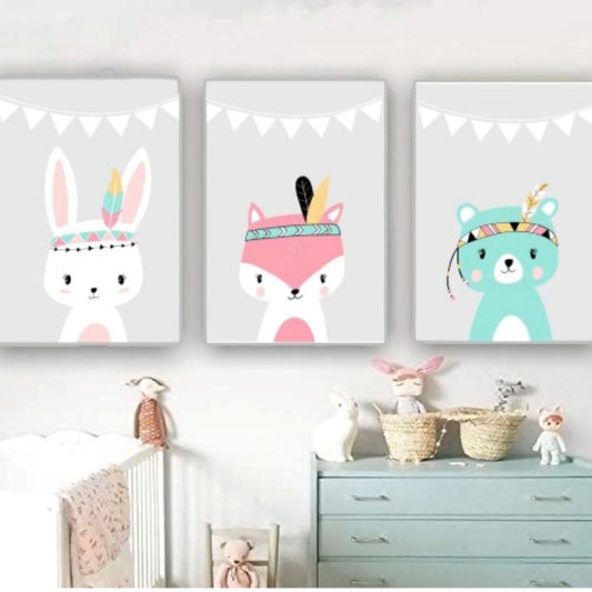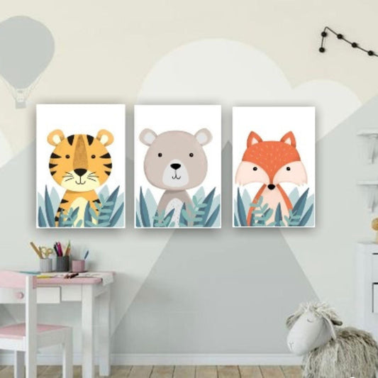 Cuadro Decorativo tipo Marmol Triptico Animales Kids 3 Unidades 40 x 40