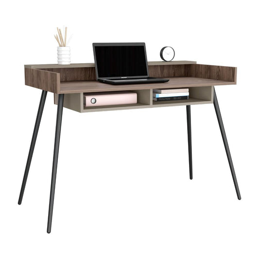 Escritorio Marlo, Chocolate y Cocoa, con patas metalicas