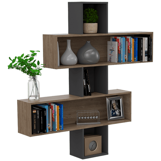Biblioteca Flotante Yeko, Café Claro y Gris, facil instalacion a la pared