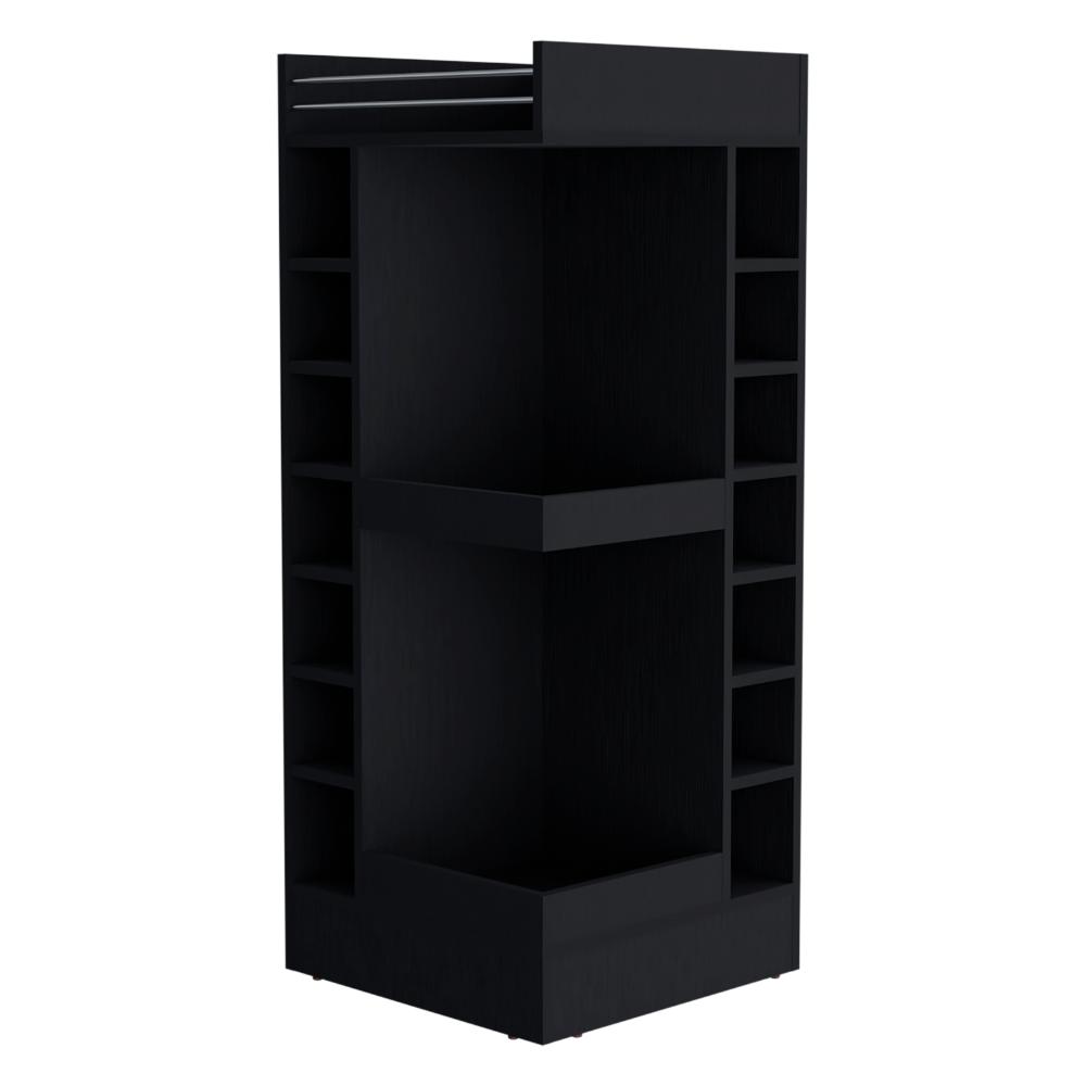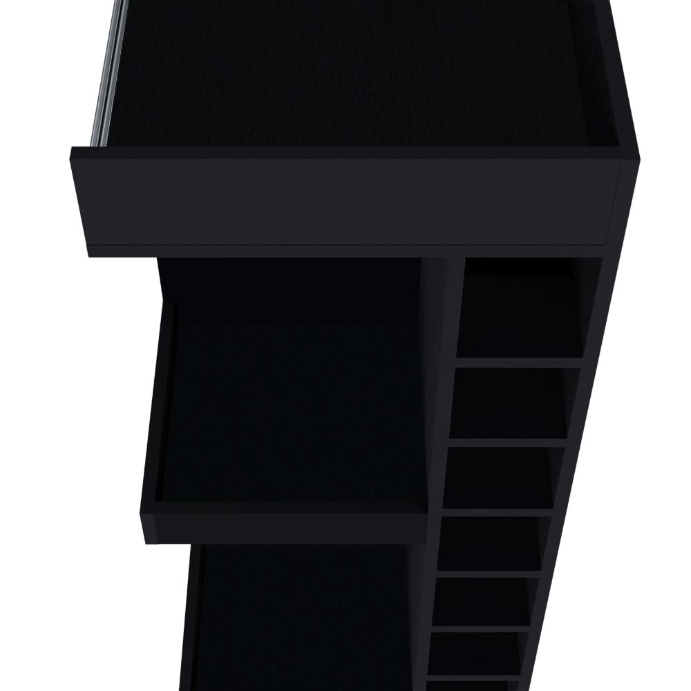 Bar bajo, con espacios par colocar objetos decorativos, espacio para organizar licores, espacio superior para almacenar copas de vinos