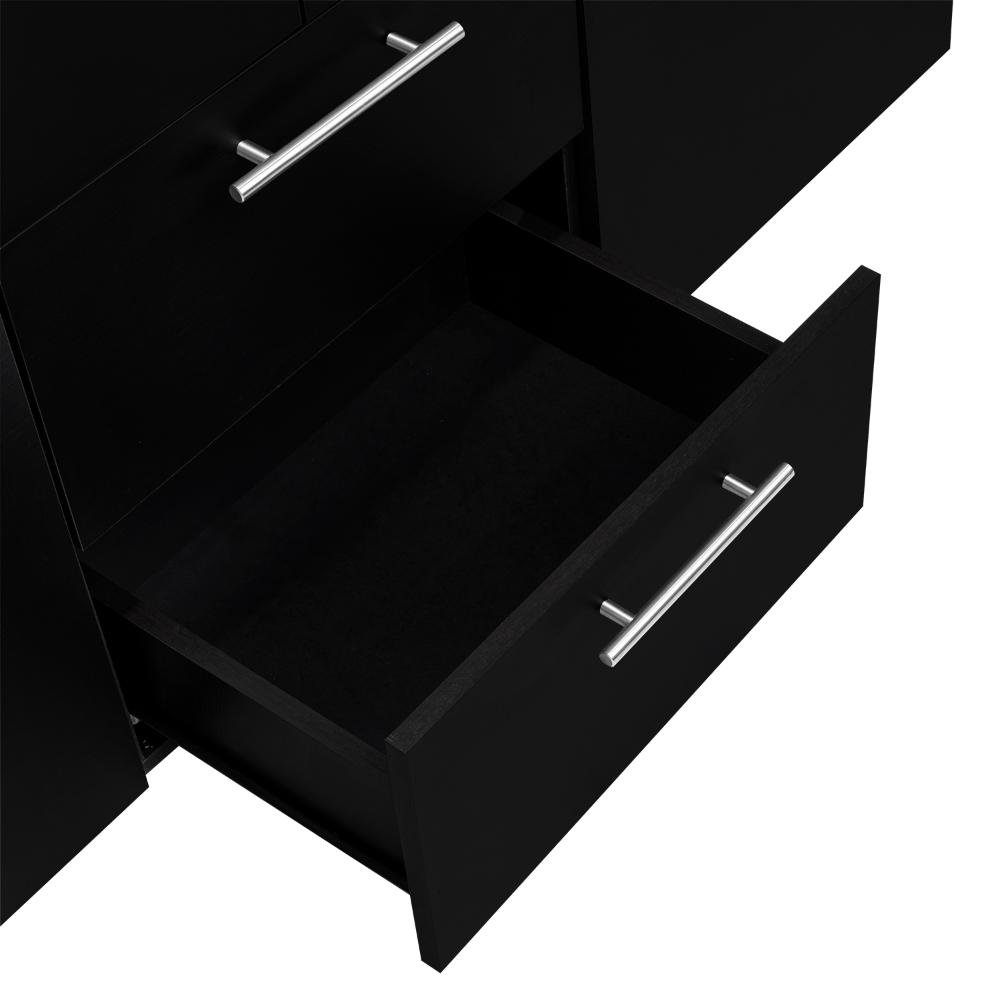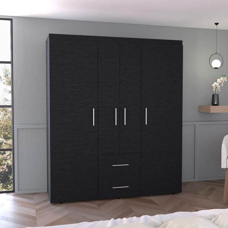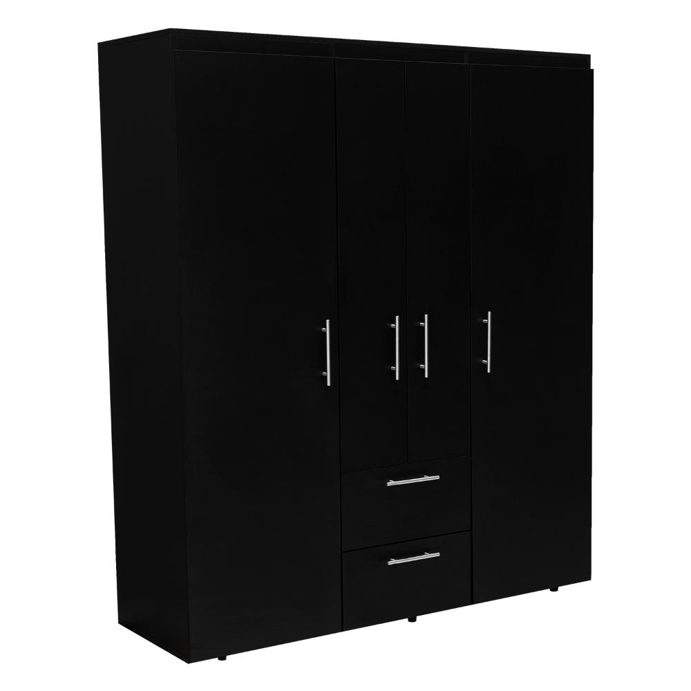 Closet, con 4 puertas batientes, 2 cajones deslizables, 3 tubos pata colgar ropa y amplios espacios de guardado.