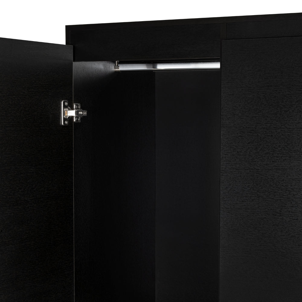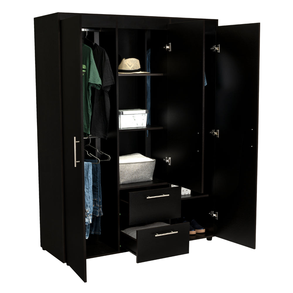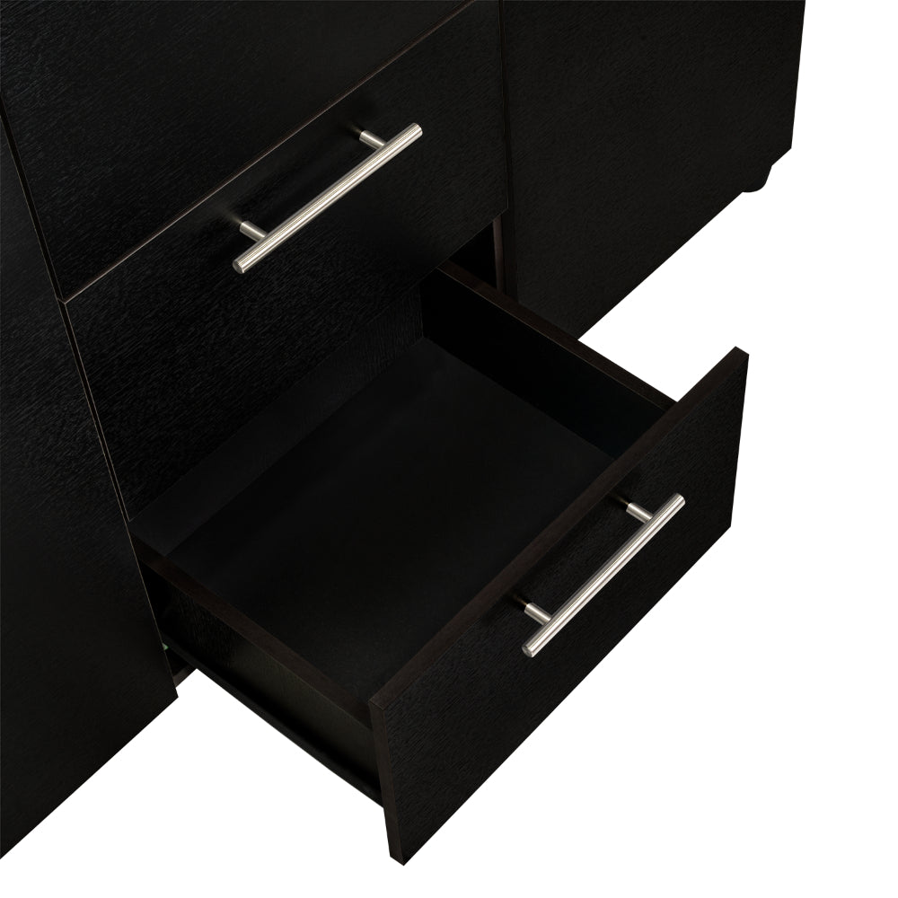 Elaborado en Madera aglomerada MDP, recubierta con láminas melamínicas de excelente calidad, en color Wengue.