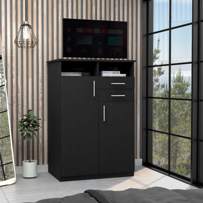 Closet Donat, Wengue, con Dos Cajones Deslizables y Tres Entrepaños Móviles