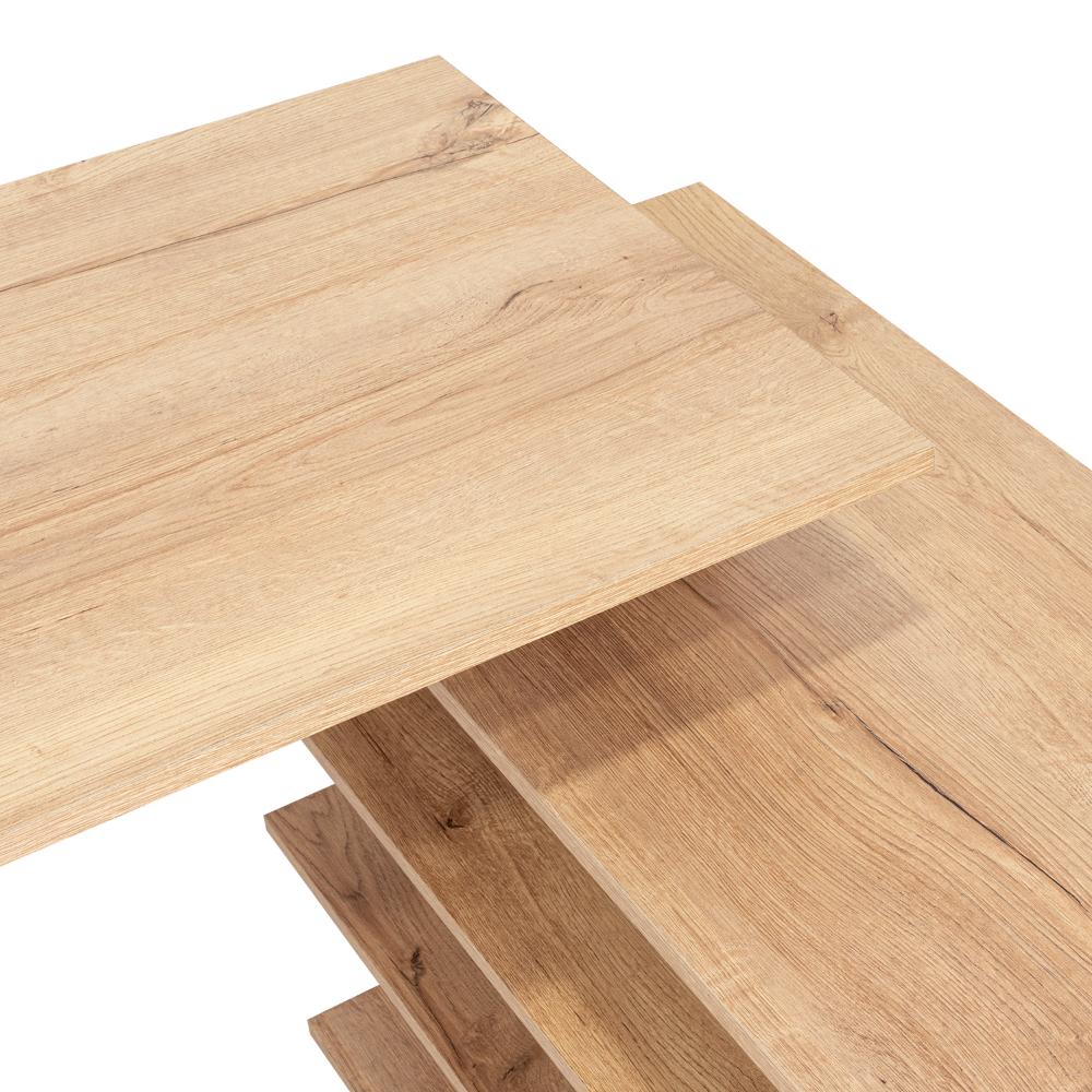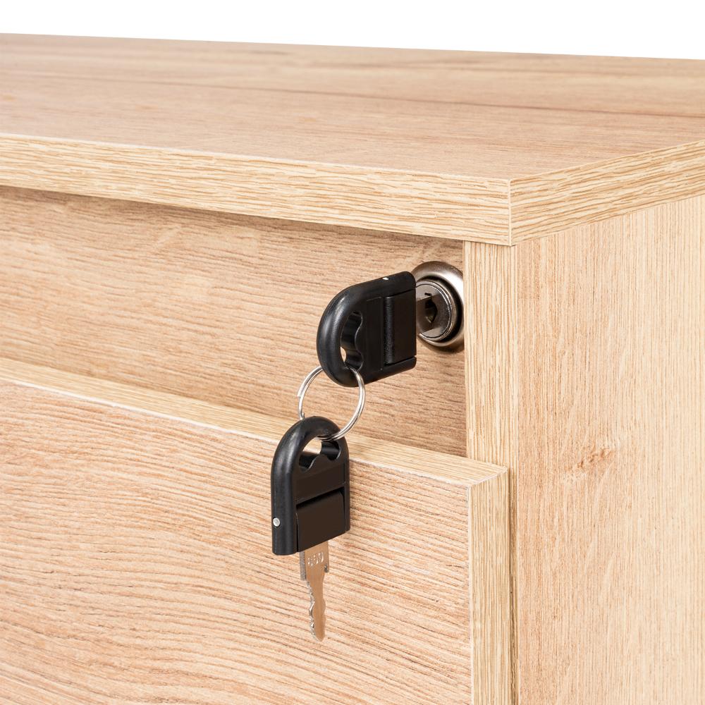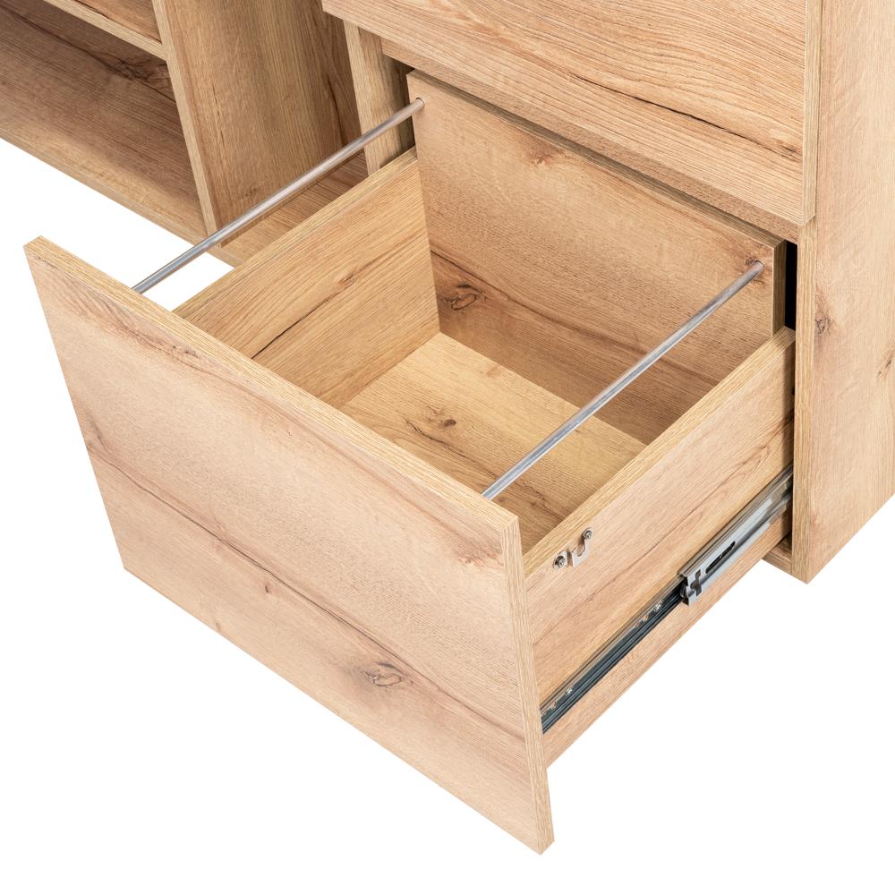 Elaborado en Madera aglomerada MDP, recubierta con láminas melamínicas de excelente calidad, en color Café claro.