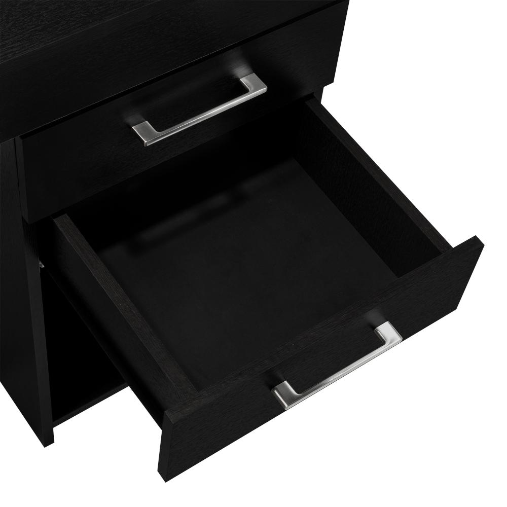 Elaborado en Madera aglomerada MDP, recubierta con láminas melamínicas de excelente calidad, en color Wengue.