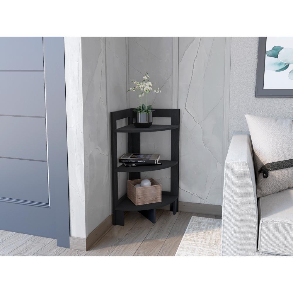 Mesa Auxiliar Esquinera, con tres entrepaños para ubicar objetos decorativos.