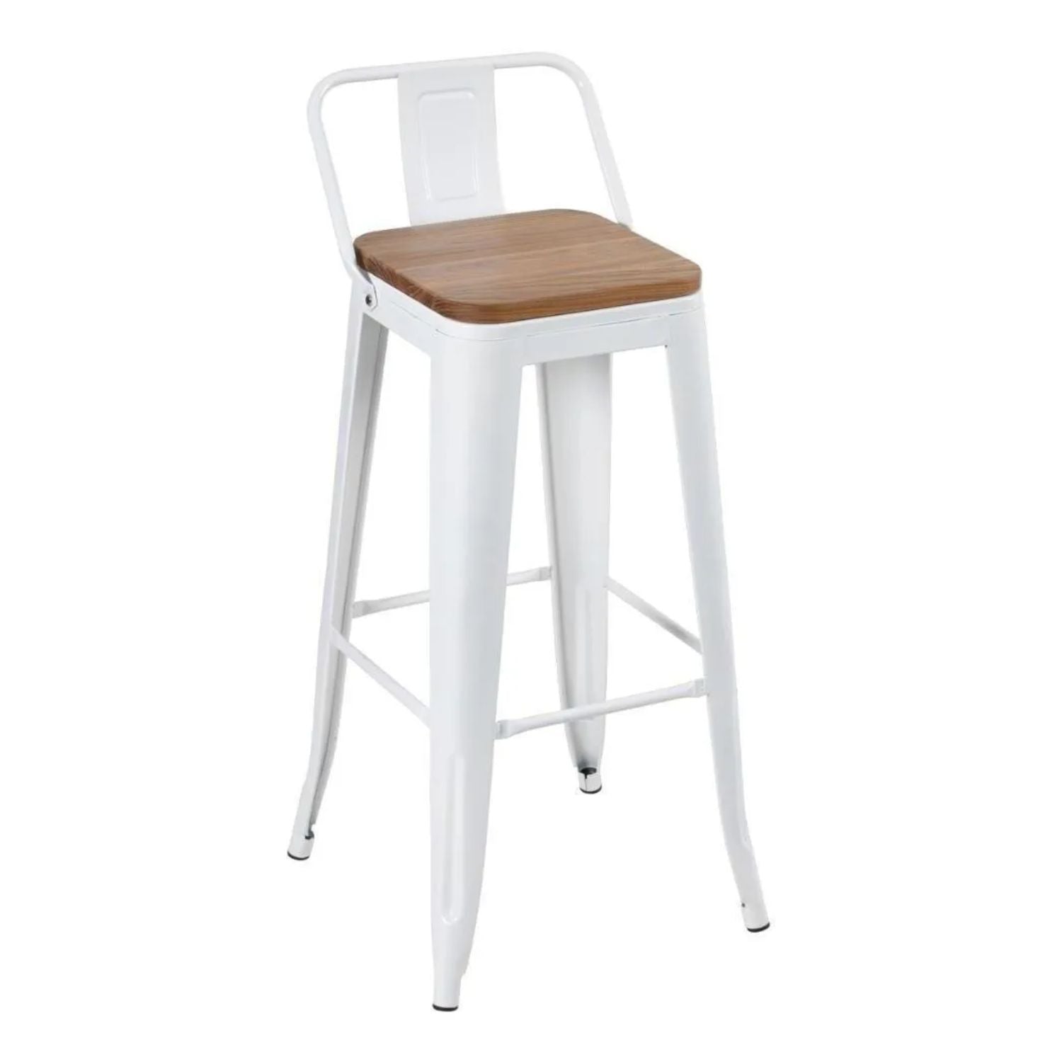 Silla de Barra Metalica Espalda Asiento en Madera Blanco