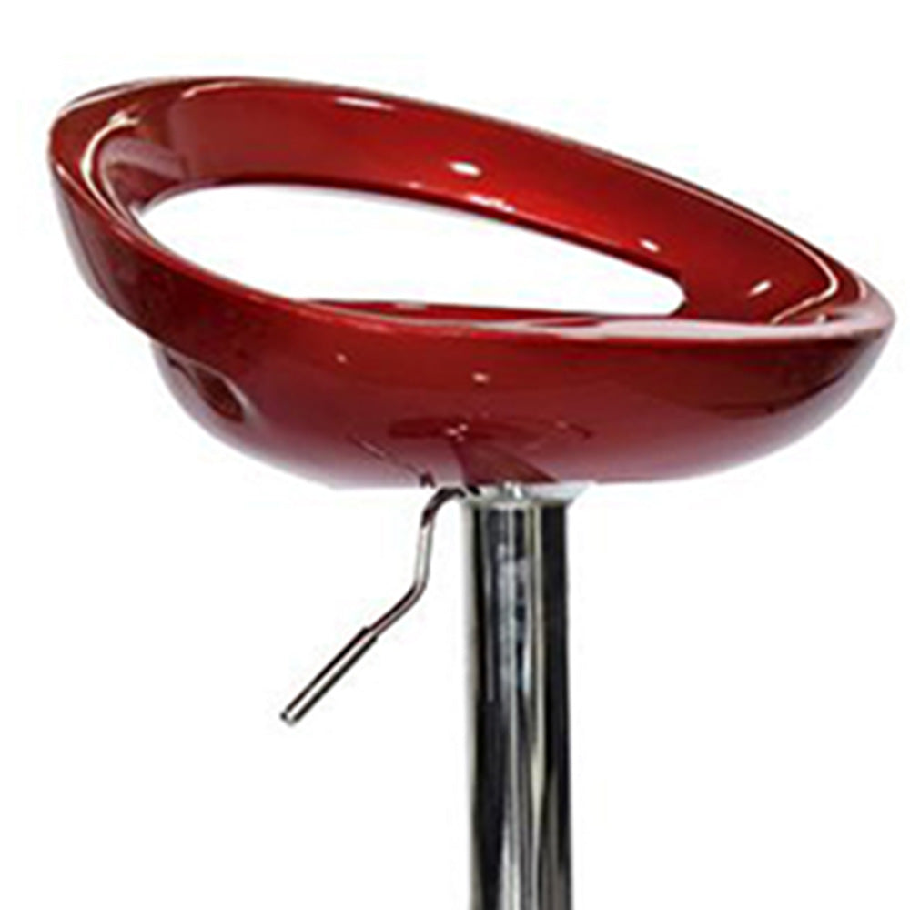 Silla bar con Asiento en fibra acrílica de alta resistencia. Base circular cromada con goma antideslizante con diametro de 39 cm. Banco giratorio regulable en altura mediante una palanca de metal localizada en el asiento. Dispone de un reposa pies cromado integrado. El banco tiene una rotación de 360°. Usado en líneas de cocina, hostelería, bares o como elemento decorativo.