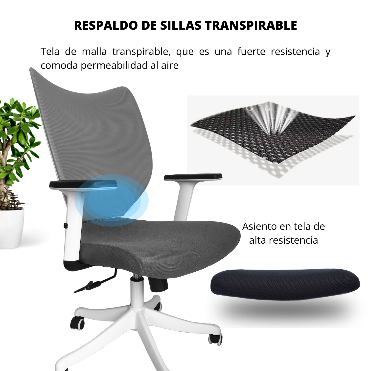 La silla de oficina Espina de Pescado es una excelente opción ergonómica con diseño moderno. Cuenta con espaldar alto en malla traslúcida, con marco en polipropileno de alto impacto. Su asiento está fabricado en espuma de alta densidad y tapizado en paño, con sistema de graduación de altura mediante palanca y cilindro neumático. Incorpora un mecanismo basculante con bloqueo de inclinación y perilla para ajustar la tensión. Dispone de brazos 3D graduables en altura y fabricados en polipropileno, ruedas en nylon de alta resistencia y base en nylon que garantizan movilidad y estabilidad.