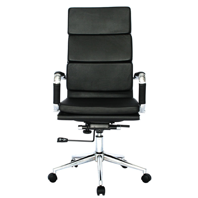 La Silla de Oficina Kobe Presidente destaca por su diseño sofisticado y ergonómico, ideal para ejecutivos que buscan confort y estilo. Cuenta con un espaldar tapizado en tela tipo cuero, bordes en acero cromado y lámina de espuma de alta densidad, además de cojines incorporados que brindan mayor soporte lumbar. El asiento, también en espuma de alta densidad, está tapizado en tela tipo cuero para ofrecer máxima comodidad. Incorpora un mecanismo con una posición de bloqueo, que permite fijar la inclinación de la silla, y una perilla para regular la tensión del respaldo. Sus brazos son fijos, fabricados en acero y recubiertos con forros en tela tipo cuero. La base metálica en acero garantiza estabilidad, y las ruedas en goma proporcionan un desplazamiento suave y silencioso.
