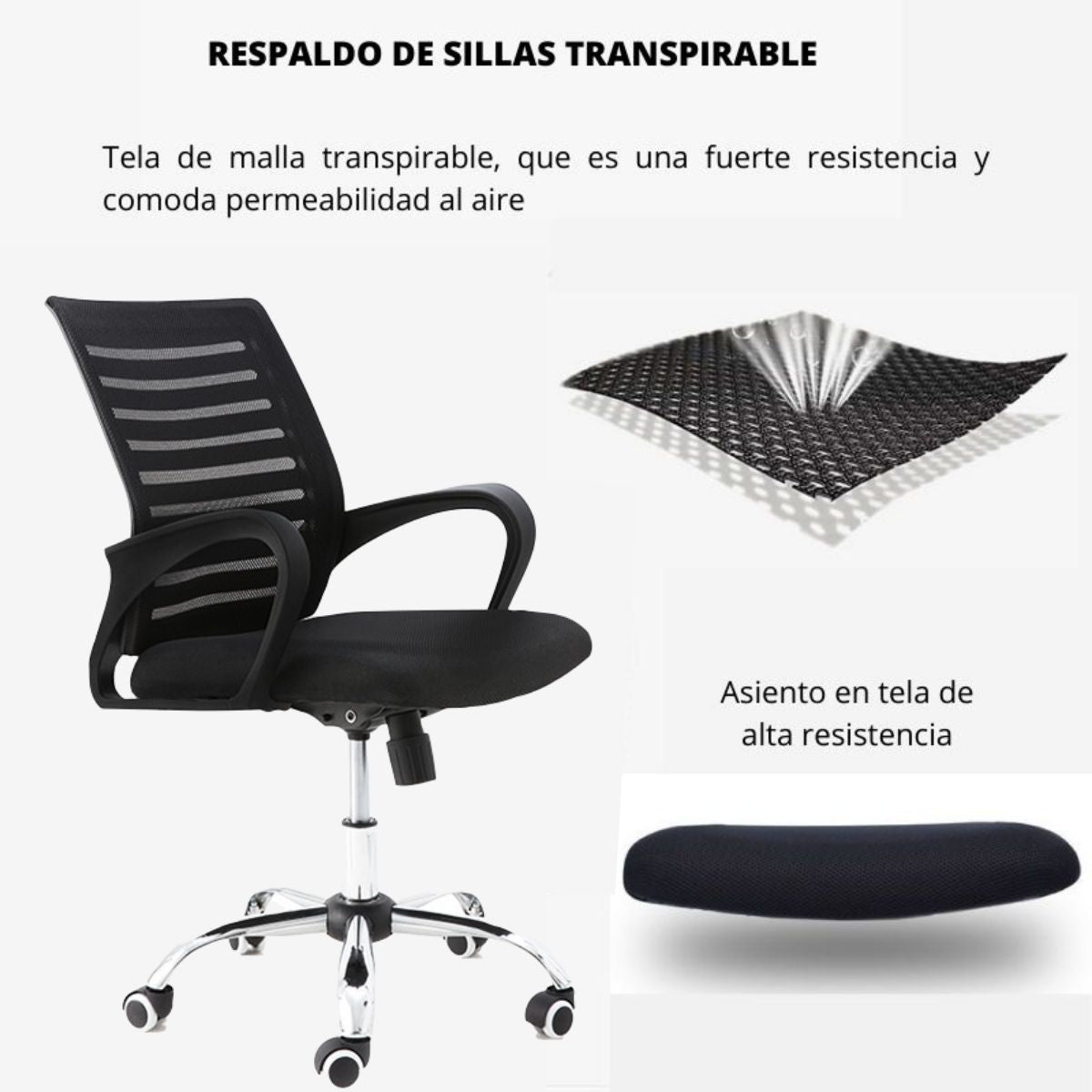 La Silla De Oficina Line cuenta con espaldar alto inyectado en polipropileno y tapizado en malla poliéster, que brinda soporte y ventilación. El asiento está elaborado en espuma inyectada y tapizado en paño, ofreciendo una superficie cómoda y resistente. Incorpora un mecanismo basculante con una posición de bloqueo a 90° y regulación de tensión mediante perilla, además de neumático con elevación a gas para ajustar la altura. Su base cromada aporta estabilidad y estilo, complementada con ruedas de nylon de 60 mm para un desplazamiento suave. Los brazos son fijos, inyectados en polipropileno, asegurando firmeza y durabilidad..