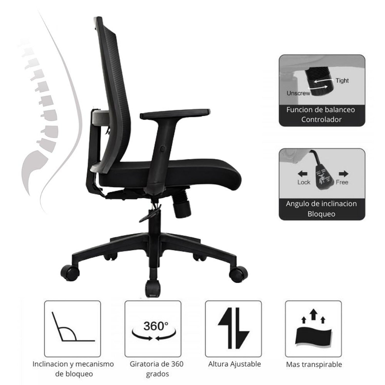 Silla De Oficina Sol Media Negro