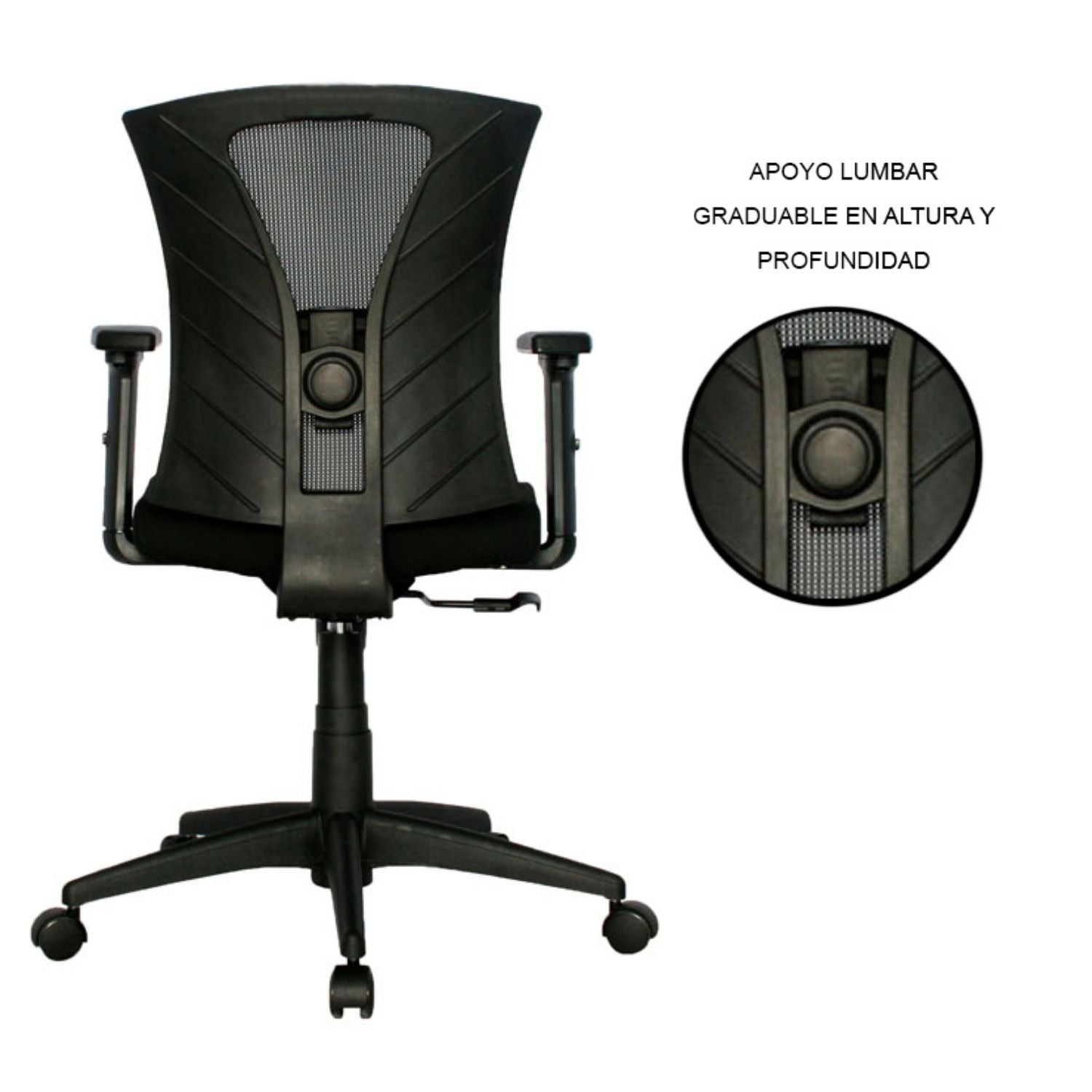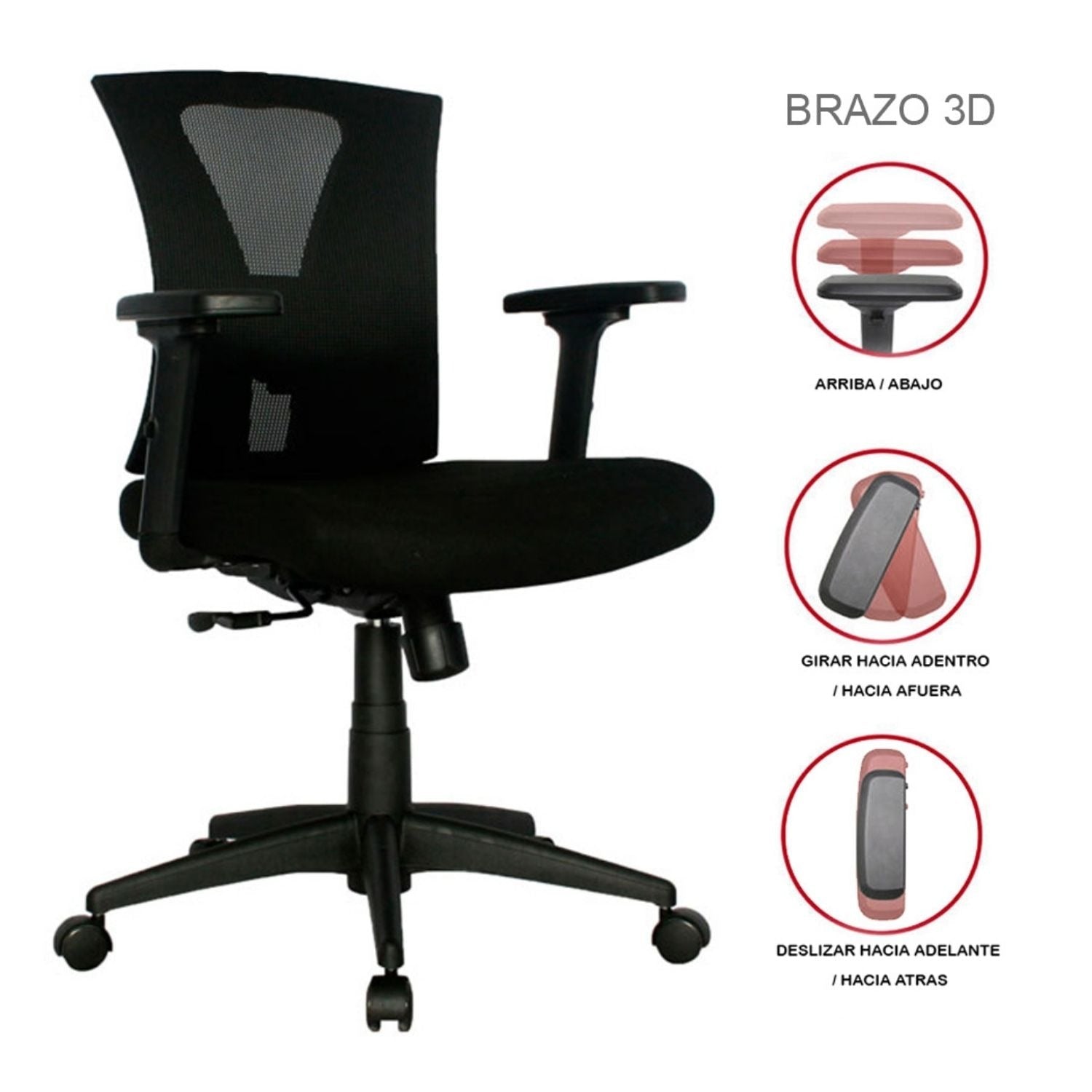 Silla De Oficina Siri Media Brazos 3D 4 Bloqueos Negro