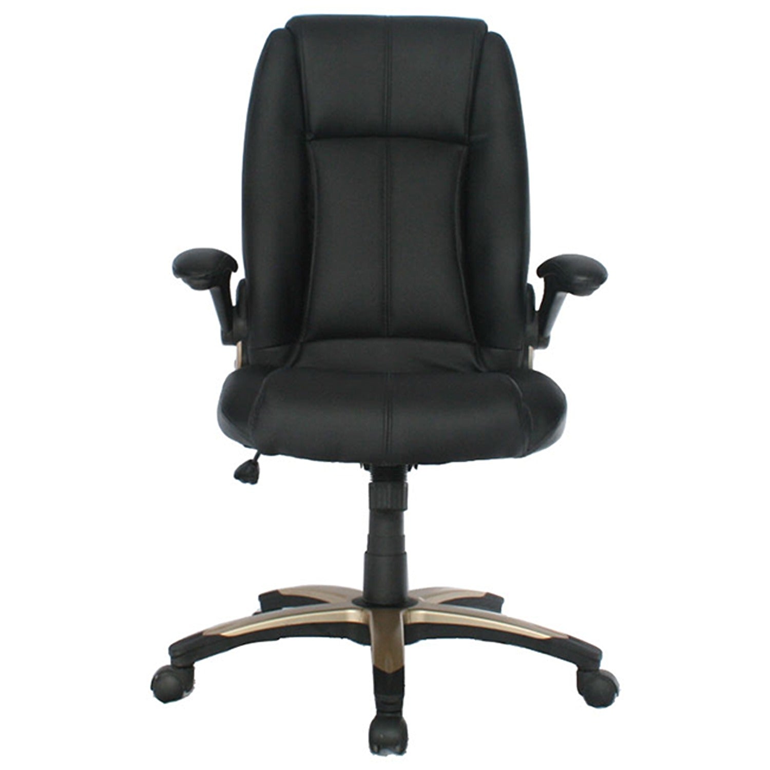 Silla ergonómica con espaldar acolchado tapizado en cuero sintético de excelente calidad. Cuenta con sistema giratorio y un punto de bloqueo para fijar la posición, además de perilla de tensión y distensión para ajustar la inclinación. El asiento está abullonado con espuma de alta densidad y tapizado en cuero sintético, con graduación de altura mediante palanca que activa el mecanismo del neumático. Incorpora brazos graduables a 90 grados en polipropileno, acolchados y tapizados en cuero sintético. Su base de cinco puntas está fabricada en nylon reforzado con fibra de vidrio, con diseño moderno. Las ruedas son 100% de nylon, de 60 mm, con suave rodamiento y rápida respuesta a los cambios de dirección. Altura del asiento: 45 cm. Elevación máxima: 111 cm. Elevación mínima: 50 cm. Peso neto: 15 kg.