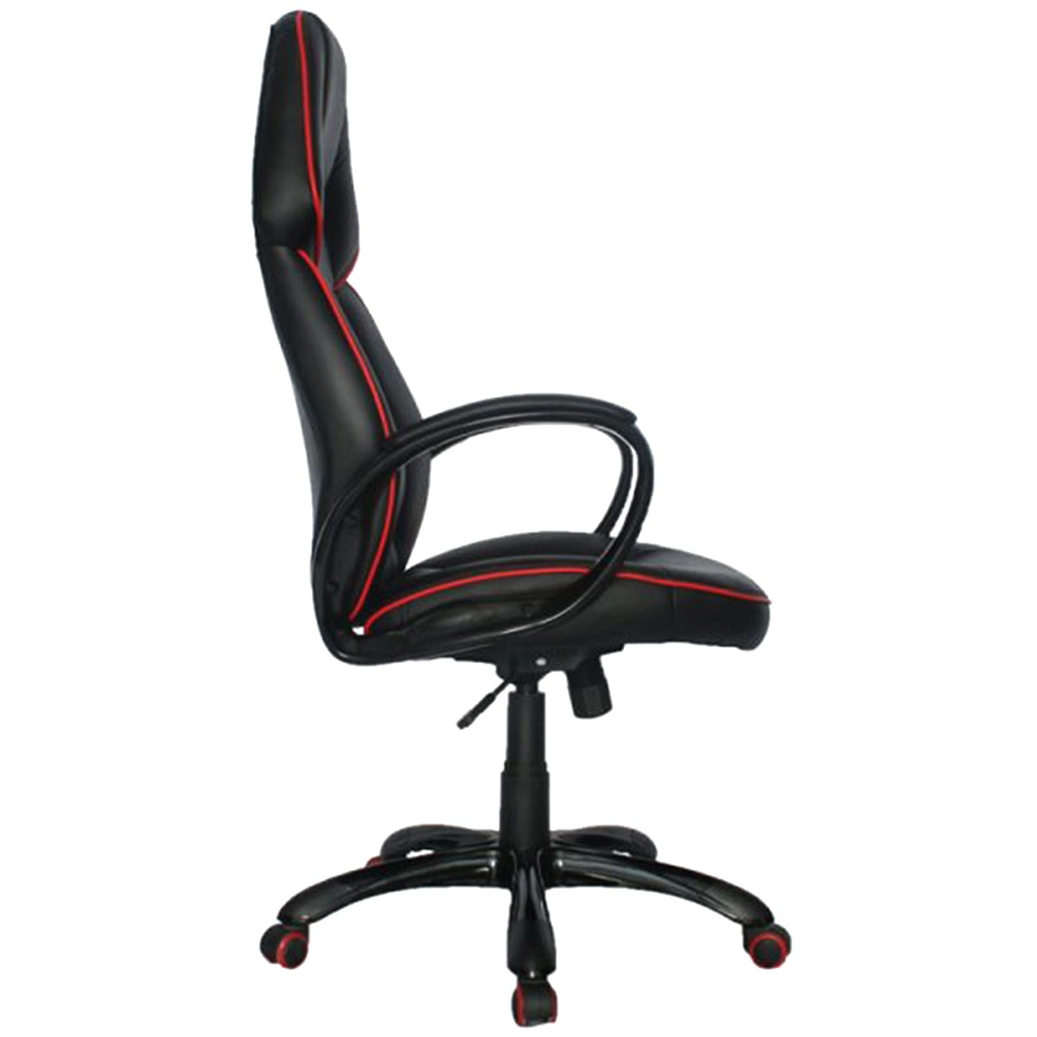 Silla Gamer Premium ergonómica con espaldar alto, espuma de alta densidad tapizada en pranna negra y terminación con detalles Rojos. Sistema giratorio que permite bloquear para fijar posición. Asiento abullonado en espuma de alta densidad tapizada en pranna negra y terminación con detalles rojos, graduación de altura mediante palanca que activa el mecanismo del neumático. Neumáticos con elevación a gas, con ruedas en goma roja para piso duro de suave rodamiento e inmediata respuesta a cambio de dirección. Brazos fijos con cojines acolchados tapizados en pranna negra. Patas en nylon reforzada con fibra de vidrio con 5 patas de 64cm brillantes.