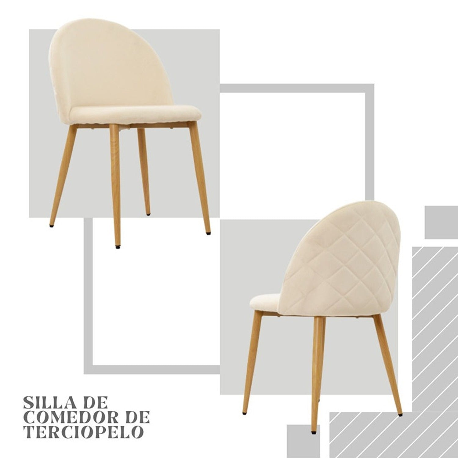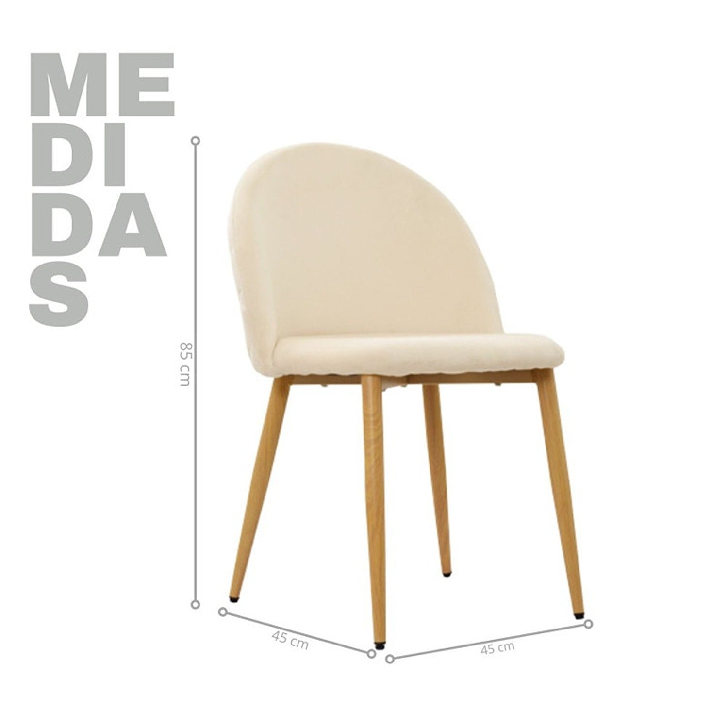 Fabricada con tela de terciopelo suave al tacto, ofrece un asiento cómodo para el uso diario. Su estructura resistente y duradera cuenta con un marco de madera maciza de alta calidad y patas de acero con acabado de efecto madera, brindando estabilidad y un diseño versátil. El montaje es sencillo, y su superficie resistente al desgaste es fácil de limpiar y mantener, convirtiéndola en una opción práctica y estilizada para cualquier espacio.
