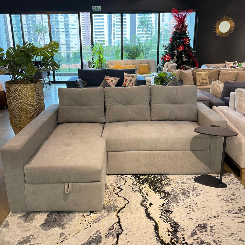 Sofá Cama Pirme Gris Con Baul